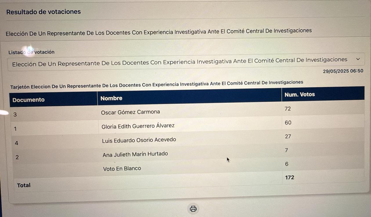 1. Comité Central de Investigaciones. (Acuerdo del Consejo Superior No. 28 del 03 de agosto de 2016) – Un Representante de los docentes con experiencia investigativa y con formación mínima de maestría y un producto resultado de investigación de nuevo conocimiento verificable en los últimos tres (3) años.
