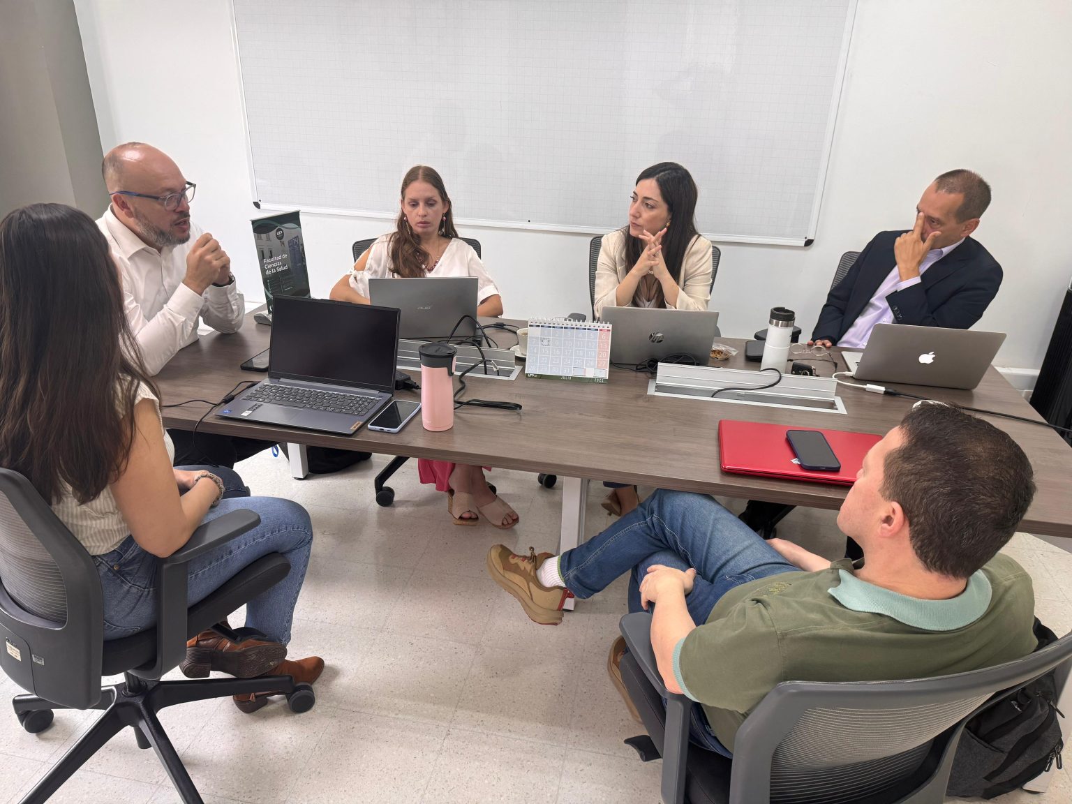 Actualmente en su fase inicial, HuBIoC reúne a una célula de ocho docentes de pregrado y posgrado en áreas como medicina, veterinaria, atención prehospitalaria y ciencias del deporte. Bajo una dinámica de reuniones quincenales, el grupo participa en sesiones formativas lideradas por el decano, la directora de la ORI Carolina Cuartas y el Dr. Rodolfo Cabrales, donde se abordan temas como internacionalización, liderazgo ético, toma de decisiones, y comparación de sistemas de salud a nivel global.