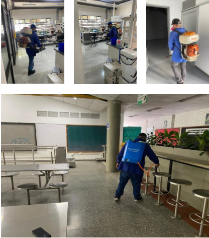 Teniendo en cuenta la fumigación obligatoria, enmarca dentro de los lineamientos establecidos por la normatividad nacional, en especial la Ley 9 de 1979 , el Decreto 3075 de 1997 , la Resolución 2674 de 2013 , y la Norma Técnica Colombiana NTC 5525 , que disponen la implementación de programas de saneamiento y control de vectores en entornos institucionales. La cual se hay que realizar en todo el campus de la universidad los días sábado 28 y domingo 29 de junio. Se complementa la siguiente información.
