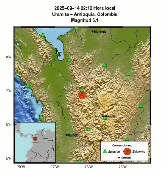 Un sobresalto interrumpió la madrugada del 14 de septiembre en varias regiones de Colombia, cuando un sismo de magnitud 5,1, con epicentro en Uramita, Antioquia, sacudió a la población y despertó a habitantes de ciudades como Medellín y Bogotá. Este temblor, el más fuerte de una secuencia de cuatro movimientos telúricos registrados en cuestión de minutos, marcó una noche inusual para el occidente del país y generó una rápida reacción tanto de las autoridades como de la ciudadanía.