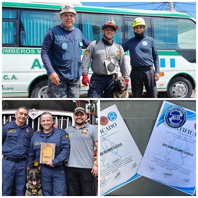 Binomio K-9 del Cuerpo Oficial de Bomberos de Pereira, logró la certificación AUI en Guatemala