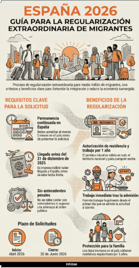 El Gobierno de España ha iniciado los trámites para una regularización extraordinaria de personas migrantes que permitirá a medio millón de extranjeros en situación irregular acceder a derechos y mejores oportunidades laborales. La medida, fruto del acuerdo entre el Partido Socialista Obrero Español (PSOE) y Podemos, busca garantizar la integración de quienes ya residen en el país y responde a la demanda del propio movimiento migrante y organizaciones sociales de reforzar la protección de este colectivo. El proceso arrancará en abril de este año y estará abierto hasta el 30 de junio (un plazo de tres meses).
