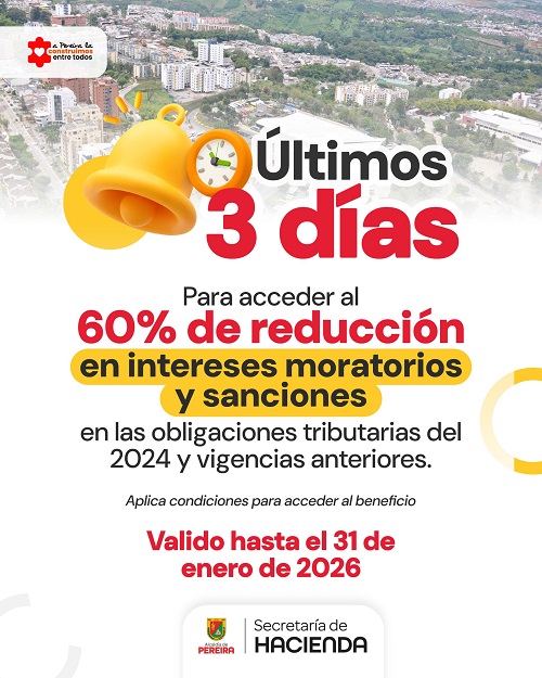 💻 Realiza tu trámite a través del Portal Tributario de Pereira o acércate al Centro de Servicio Oportuno, local 104 edificio Torre Central.