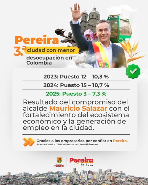 PEREIRA ILUMINA A COLOMBIA COMO 3RA. CIUDAD CON MENOR DESOCUPACIÓN DEL PAÍS