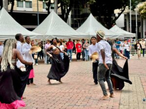 Posteriormente, la conmemoración se trasladó a la Plaza de Bolívar, espacio que se transformó en un escenario de esperanza y reactivación económica mediante una feria de emprendimientos liderada por la propia población víctima. Esta muestra productiva fue complementada por una oferta cultural y de memoria; por un lado, la Unidad de Búsqueda de Personas Dadas por Desaparecidas (UBPD) presentó la exposición “Donde estén los seguiremos buscando”, visibilizando la incansable lucha de las madres buscadoras, mientras que grupos artísticos como Black Dance utilizaron las danzas del Pacífico para transmitir un mensaje de empatía y reconocimiento.