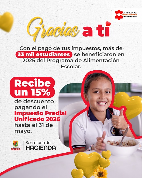 📆Aprovecha el 15% de descuento pagando tu Impuesto Predial Unificado 2026 hasta el 31 de mayo.