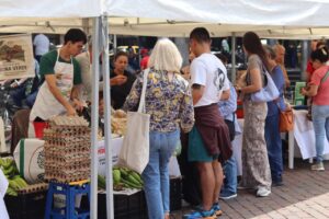 Lina Tolosa, beneficiaria de Pereira de Cosecha, señaló que “estoy muy contenta de estar en la plaza ahora mismo, ya que nuevamente salimos con el mercado agroecológico. Agradecida de estar aquí porque nos damos a conocer a toda la comunidad de Pereira”.