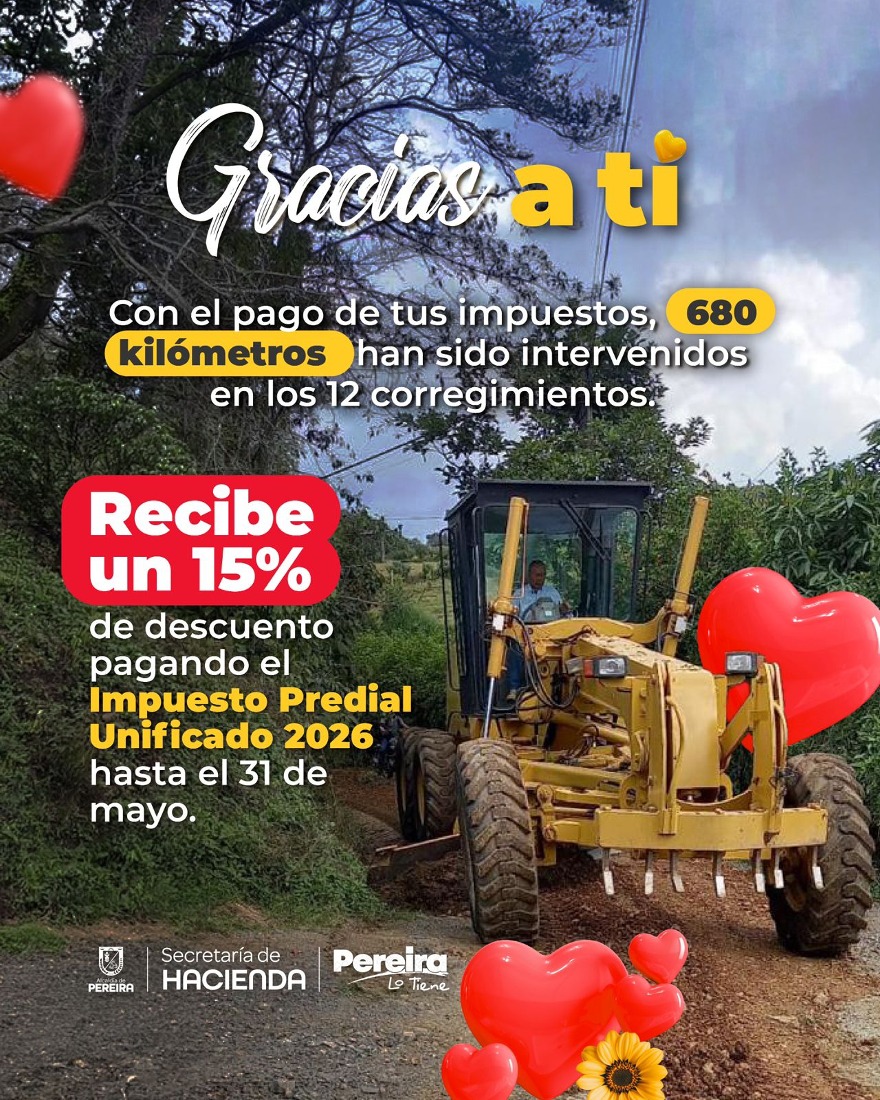 📅 Paga hasta el 31 de mayo a través del Portal Tributario de Pereira.